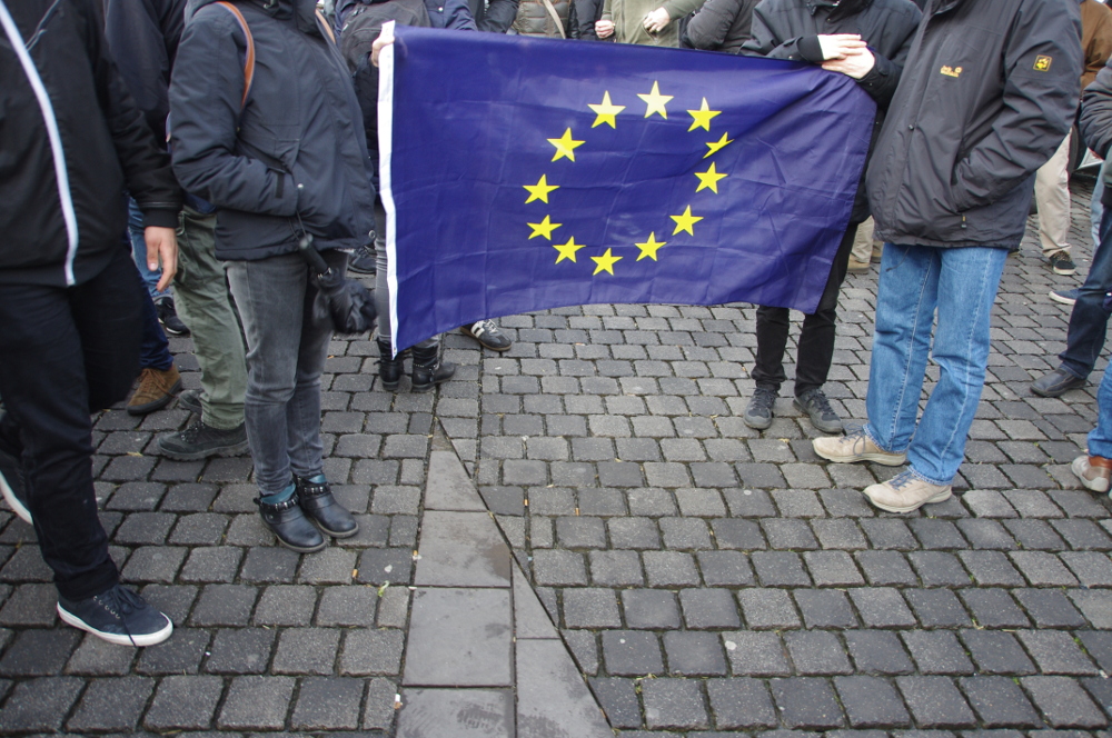 Ach ja und an alle EU-Fans, lasst die Lappen doch in Zukunft vielleicht mal zuhause. Ist irgendwie eigenartig gegen menschenverachtende potenzielle und tatsächliche Mörder zu protestieren, aber gleichzeitig ein Herrschaftskonstrukt zu feiern, welches so viele Menschen – alleine im Mittelmeer – auf dem Gewissen hat.