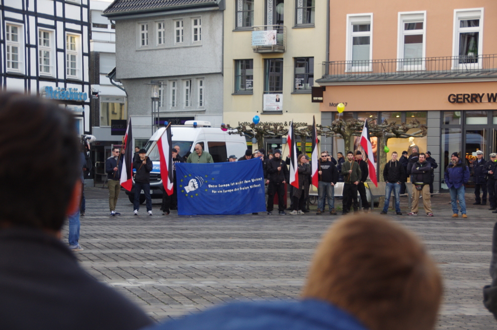Am 29.03. fand seit langer Zeit mal wieder eine von der Partei Die Rechte organisierte, faschistische Kleinstkundgebung in Unna statt, zu der sich 20 Fressen einfanden. Direkt neben der Kundgebung der Faschist*innen fand eine Gegenkundgebung bestehend aus einem recht bunten Spektrum von Parteien, bis hin zur radikalen Linken und anarchistischen Bewegung statt. Circa 200 Menschen beteiligten sich im Verlauf an dieser und setzten ein klares Zeichen. Die Kundgebung der Nazis dürfte so gut wie keine Resonanz für sie erzeugt haben. Wir wissen dass dies bei fast allen Aktivitäten der Faschos behaubtet wird und ab und zu stimmt dies sicherlich auch nicht. In diesem Fall war dies jedoch offensichtlich. Aus Unna dürften maximal eine Handvoll Faschist*innen teilgenommen haben, der Rest reiste aus Dortmund an.